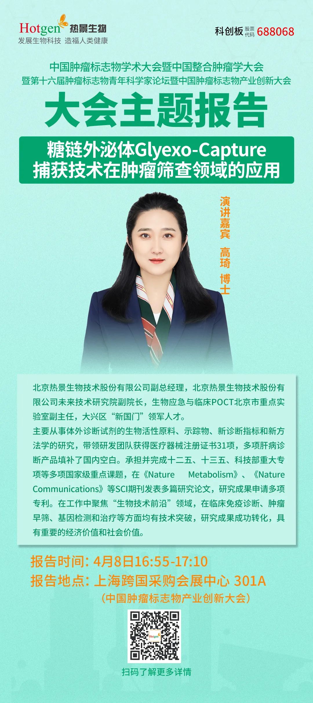 4月8日下午,凯发k8国际生物技术股份有限公司副总经理,凯发k8国际生物未来技术研究院副院长高琦博士受邀在中国肿瘤标志物产业创新大会分享创新技术报告《糖链外泌体Glyexo-Capture捕获技术在肿瘤筛查领域的应用》。