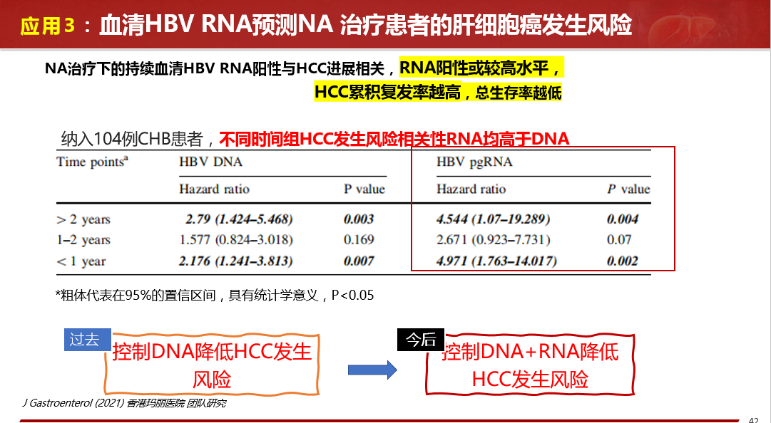 ★今后,从过去单一的控制HBV DNA到控制HBV DNA+ HBV RNA降低HCC发生风险将成为一种应用趋势。